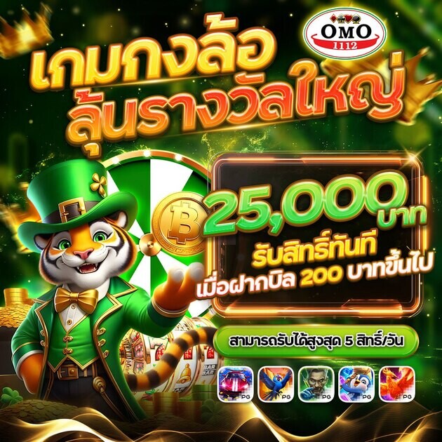 ทุกๆการฝากเงิน 200 บาท ฝากต่อบิล รับสิทธิ์พิเศษสำหรับชาว OMO1112 ฟรี 1 หมุน รับสูงสุด 5 สิทธิ์ต่อวัน หรือซื้อหมุนในราคา 20 บาท รับรางวัลสูงสุดถึง 25,000 บาบ